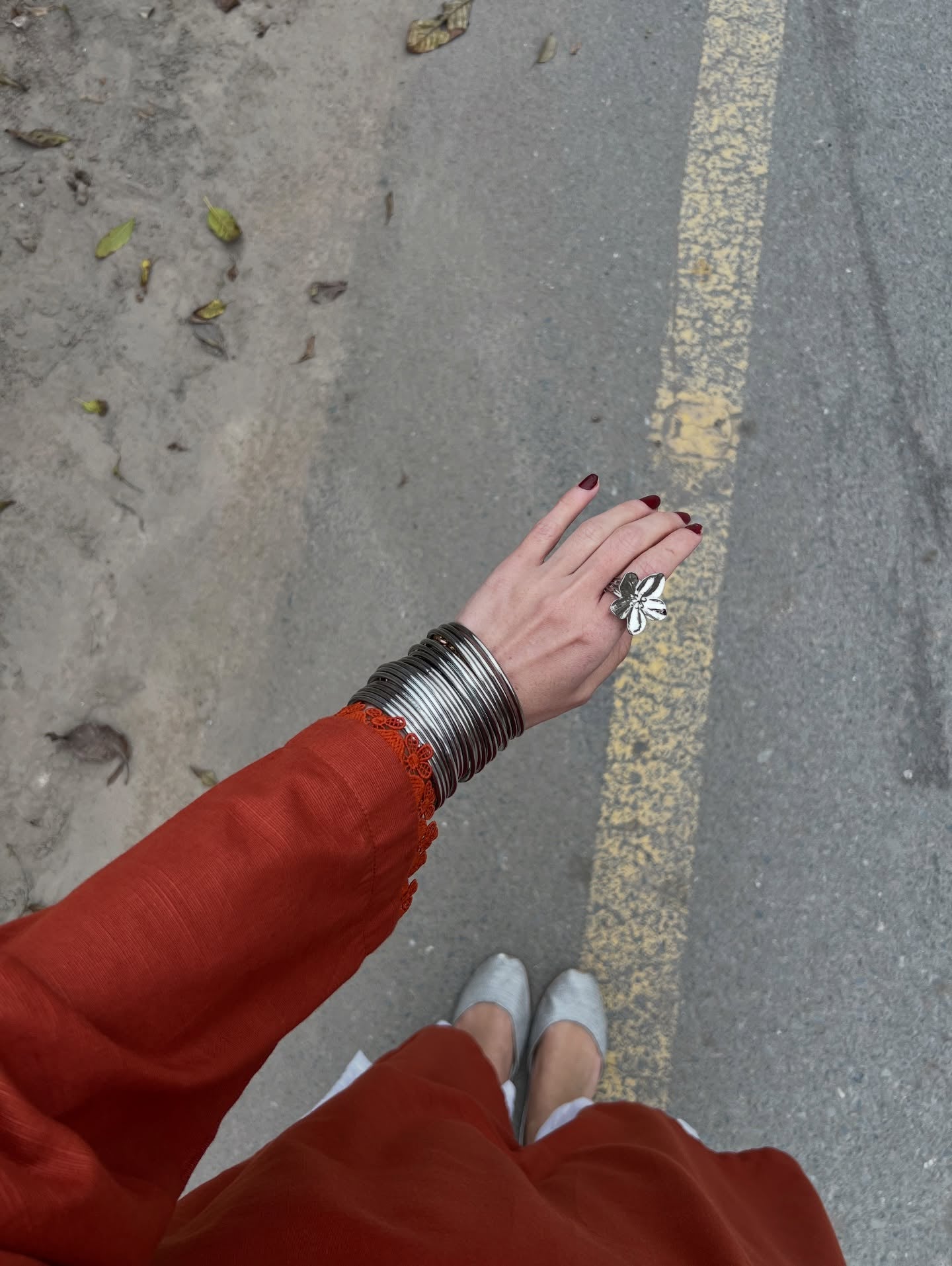 The Heritage Look: Pair the teal or red variants with heavy oxidized jhumkas and a statement ring. Add a pair of embroidered mojaris and a contrasting pashmina for a classic evening vibe.