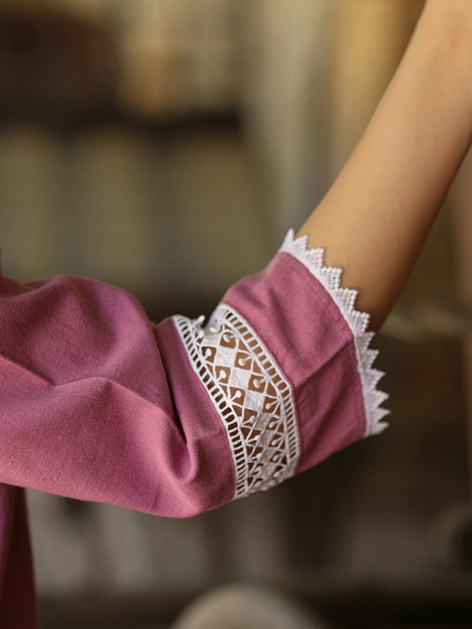 - Sleeves: Wide, airy sleeves featuring broad lace borders.