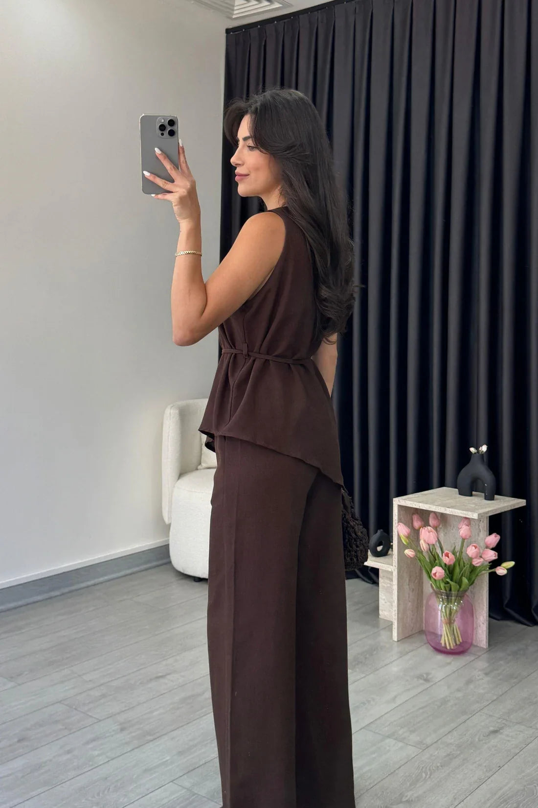 The set features a classic collared button-down shirt with tailored lines and full sleeves, offering a relaxed yet polished fit. This is perfectly balanced by the flowing, high-waist wide-leg trousers that provide maximum comfort and a flattering silhouette. Available in a spectrum of versatile colors—from essential neutrals to deep seasonal shades—the "Zara" set is an indispensable investment piece for modern workwear, sophisticated travel, or resort relaxation.